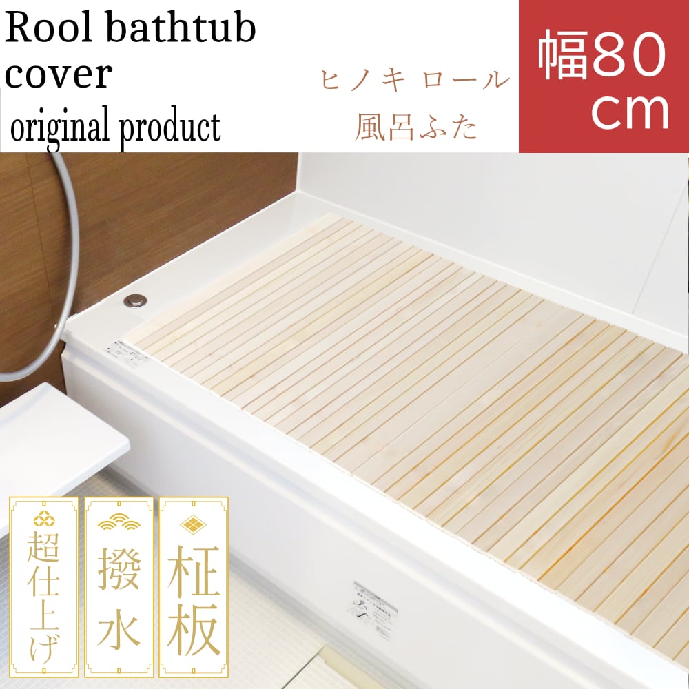 ヒノキ ロール 風呂ふた 撥水塗装 幅80cm 送料無料 受注生産 冷めにくい 長さ100〜140cm(選択式) x 厚み約8mm 巻き 組み合わせ 桧 ひのき 蓋 木製 フタ 保温 檜